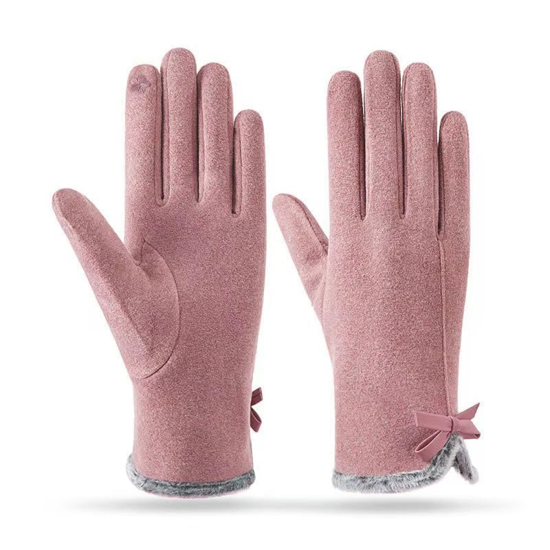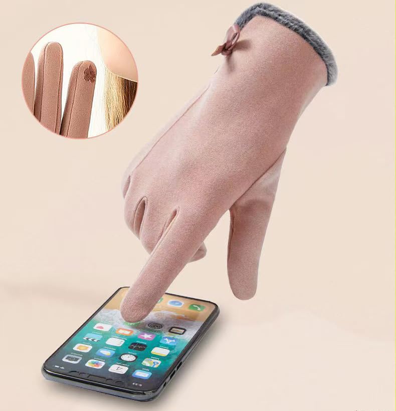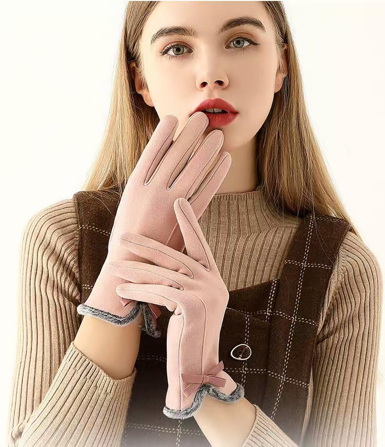 CasRmia - قفازات شتوية للنساء من كاسرميا، قفازات تدفئة مقاومة للرياح مع بطانة فاخرة ومزينة بفيونكة فراشة أنيقة وعصرية، مناسبة للاستخدام مع الشاشات التي تعمل باللمس