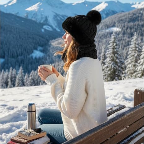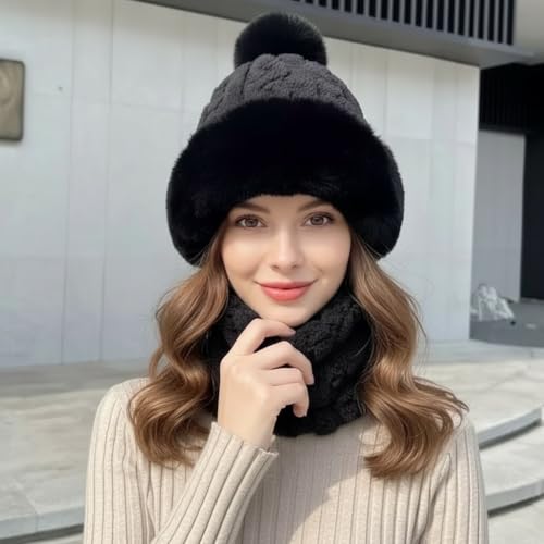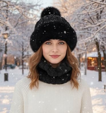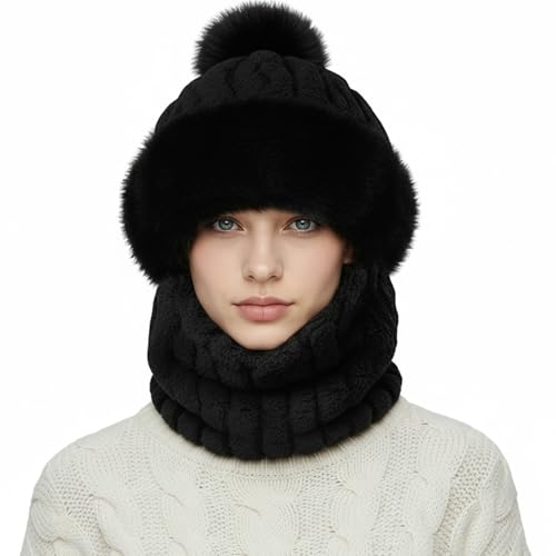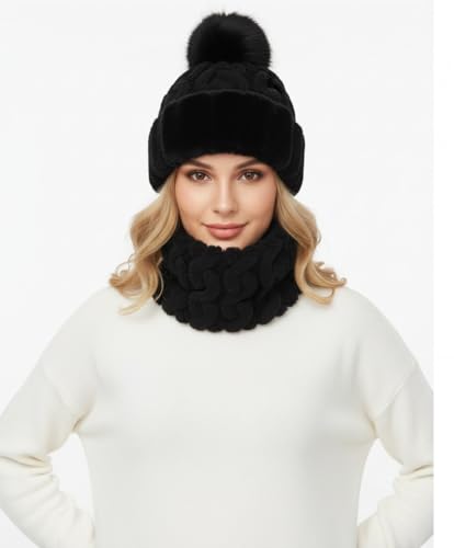 CasRmia - قبعات صغيرة شتوية للنساء من كاسرميا قطعة واحدة - مجموعة قناع محبوك ووشاح للتزلج على الجليد من الصوف المقاوم للرياح لتدفئة الرقبة وحماية الاذن للبرد