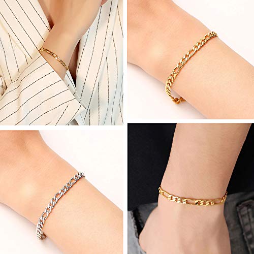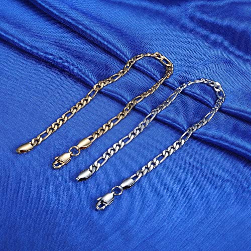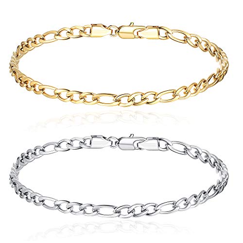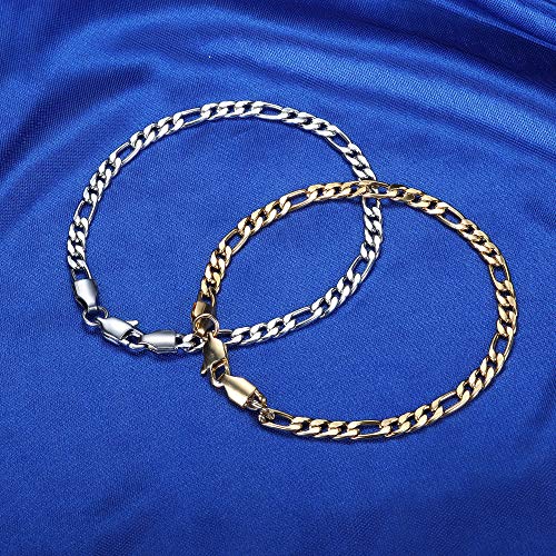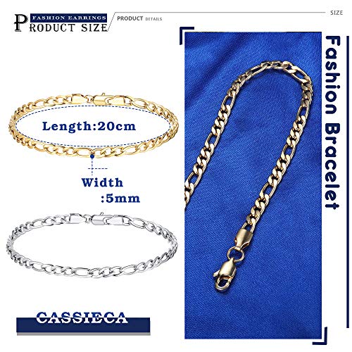 CASSIECA - قطعتان انسيال فيجارو ستانلس ستيل للرجال والنساء من كاسيكا سوار بتصميم ايطالي وكوبي فضي وذهبي 7 7.5 8 8.5 بوصة inches معدن زركونيا مكعب