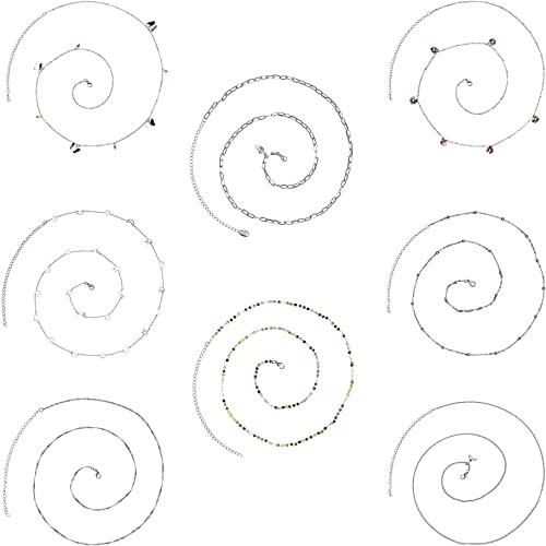 CASSIECA - كاسيكا 8 قطع من سلسلة الجسم بيكيني للشاطئ للنساء، خرز بذور اللؤلؤ على شكل زهرة صدف فراشة، سلسلة خصر قابلة للتعديل، مجوهرات عصرية مصنوعة يدويا للنساء، سلسلة حزام مثيرة، خليط معدني، لؤلؤ، صدف، فضي