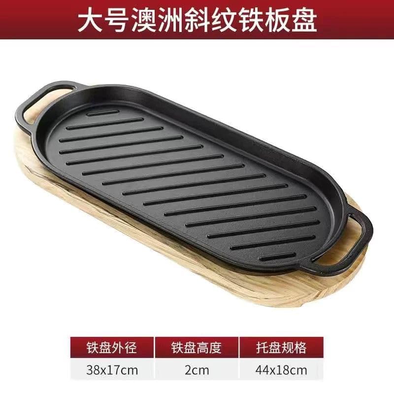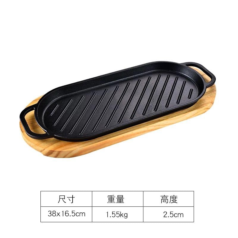 Generic - طاسة شواء بمقبضين مصنوعة من الحديد المصبوب، مقاومة للالتصاق، طاسة تيبانياكي كورية معدنية ومستطيلة الشكل، لشواء الستيك (بيضاوية)