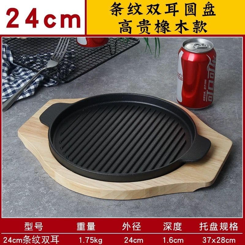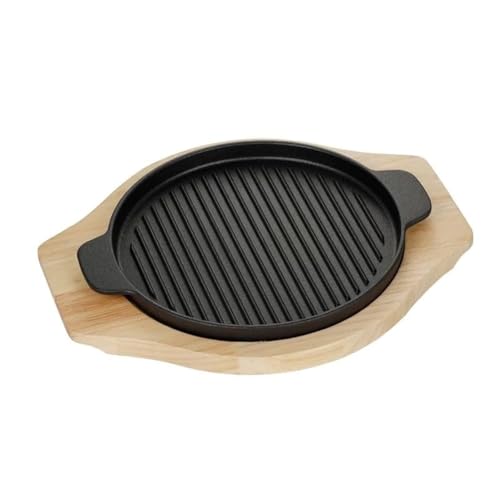 Generic - طاسة شواء من حديد مصبوب، صينية لحم الفاهيتا اليابانية مع قاعدة خشب للمطعم والمنزل، ملحق طبخ للشواء واللحوم والمأكولات البحرية (دائري)