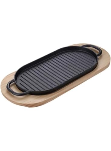 generic - مقلاة شواء مستطيلة من الحديد الزهر مع طلاء مانع للالتصاق، لون اسود، للطبخ بالحث، طبق شواء من الحديد