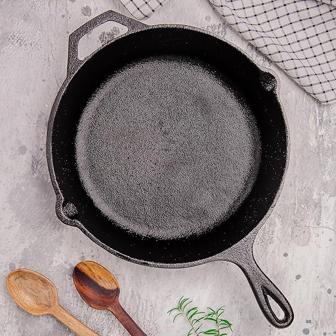 - هيكل قوي: تتميز مقلاة الحديد المصبوب هذه بهيكل قوي ومتين، مما يجعلها مثالية للحمير والقلي والخبز.