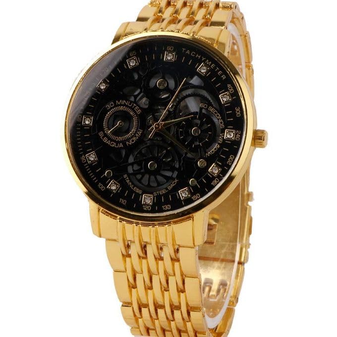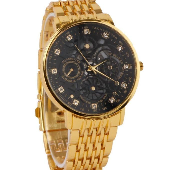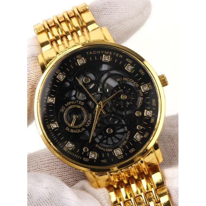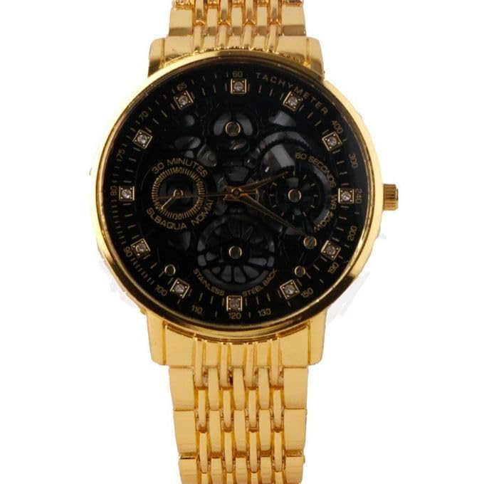 Generic - ساعة يد كاجوال للرجال - باند استانلس ستيل ذهبي - مينا سودا- IK20