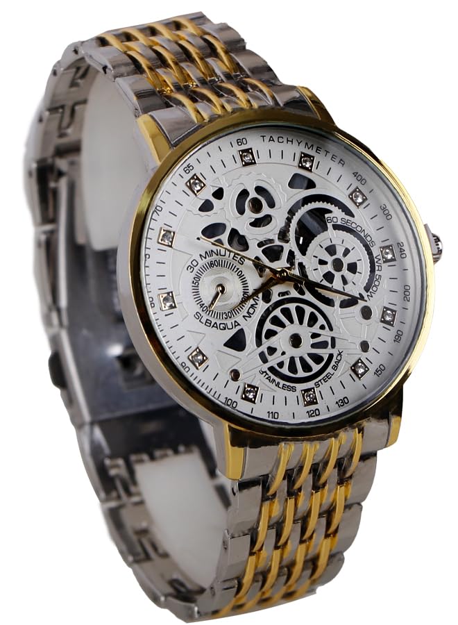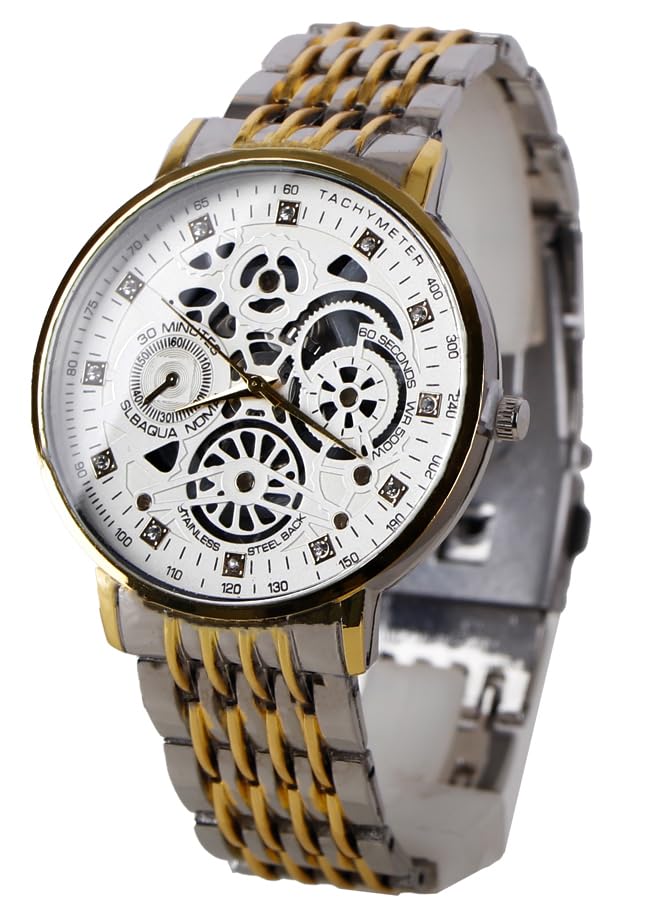 Generic - ساعة يد كاجوال للرجال باند استانلس ستيل فضي مطعم بالذهبي مينا بيضا IK04 تناظري