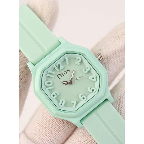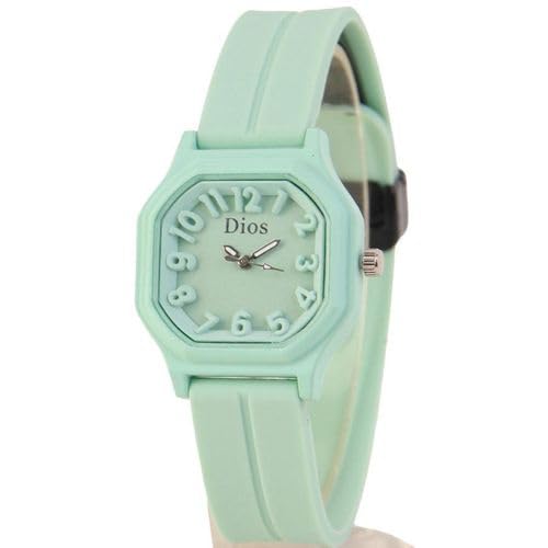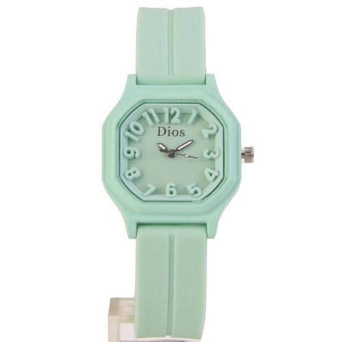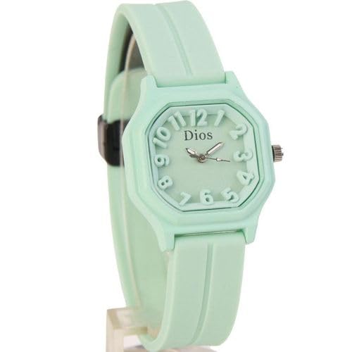 Generic - ساعة كاجوال نسائية اخضر فاتح– تصميم عصري باند سيليكون مريحDI13