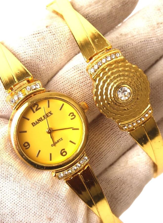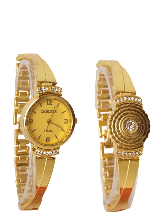 Generic - طقم ساعه بانسيال كاجوال حريمي - انالوج- كوارتز- باند استانلس ستيل ذهبي - مينا ذهبي , GT18