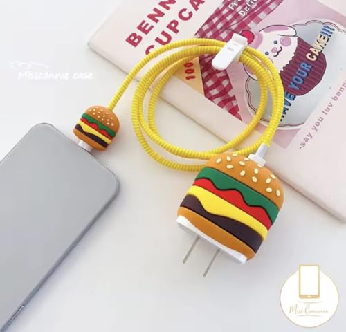 Cat Care - حافظة حماية من كات كير متوافقة مع شاحن آيفون 20W بتصميم كيس مصنوعة من السيليكون بنمط برجر