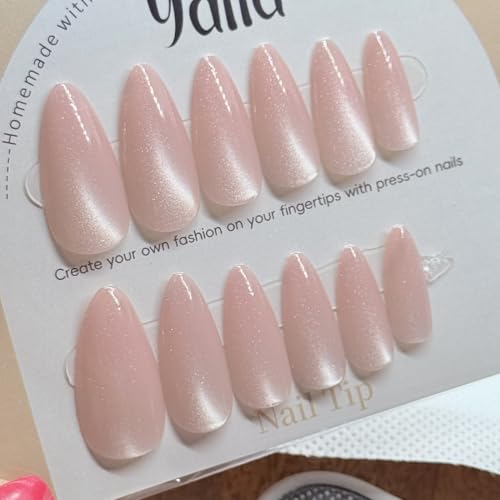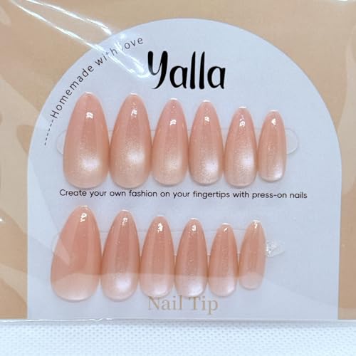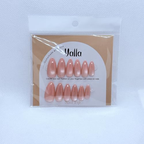 Generic - مجموعة اظافر بالضغط بتأثير عين القطة - 12 لون فاخر ومبهج مع لمسة نهائية جل لصالونات التجميل - شكل لوز (بيج)