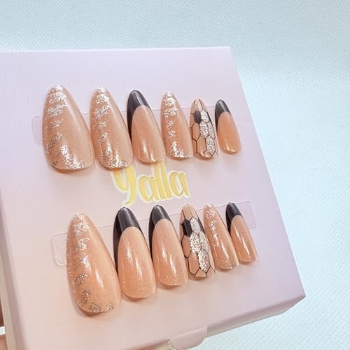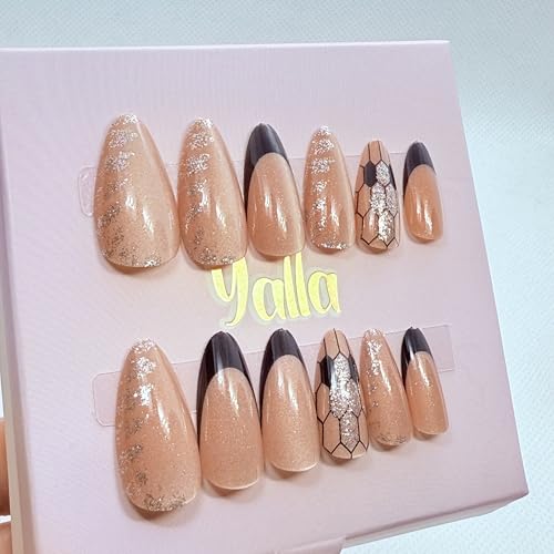 Generic - مجموعة اظافر مضغوطة بتأثير عين القطة - 12 لون فاخر ومبهج مع لمسة نهائية جل لصالونات التجميل - تصميم ثعبان - شكل لوز - اظافر متوسطة الطول (بيج داكن)
