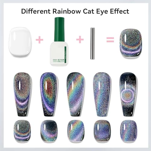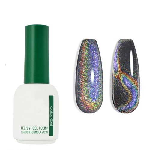 SNS SECRET NAILS SYSTEM - طلاء أظافر جل بتأثير عين القطة، طلاء مغناطيسي بتأثير عاكس متعدد الألوان يجفف بمصابيح ليد/ الأشعة فوق البنفسجية لصالونات التجميل والمنزل بتأثير المجرة يدوم طويلاً (بريزما كات آي 02 )، 12 ملليلتر