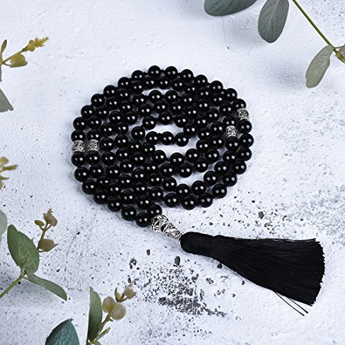 Cat Eye Jewels - سلاسل من خرز مالا بدلاية تاسل للتسبيح وبكريستال معالج كات اي جيولز مكونة 108حجر شهر الميلاد اليشب ولافا وحجر كريم طبيعي قيم بقياس 8 ملم للرجال والنساء لون تركواز
