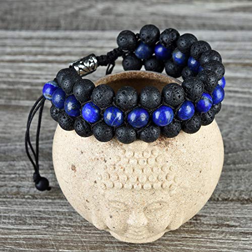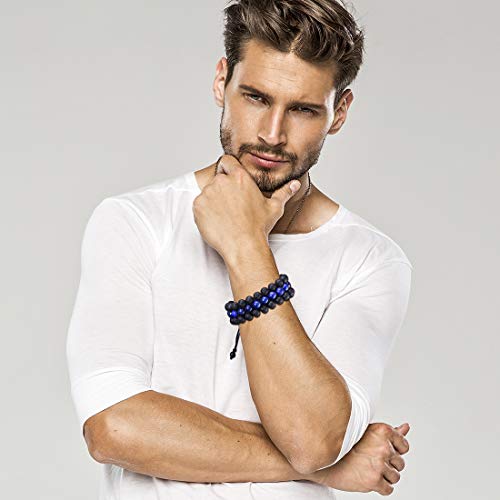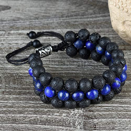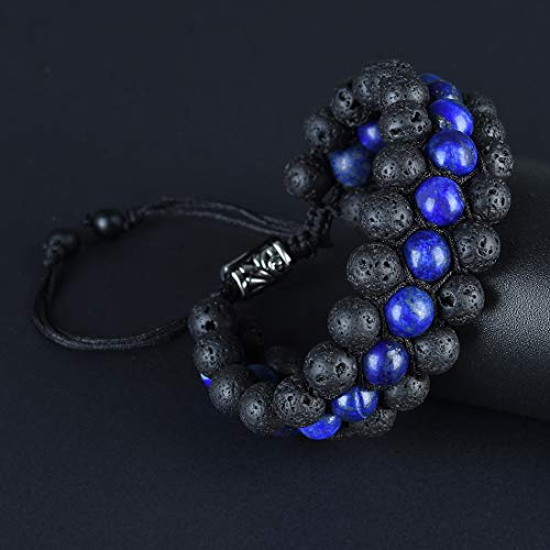 Cat Eye Jewels - سوار مزدوج وثلاثي الطبقات من احجار كريمة 8 ملم كريستال وعين النمر ولافا وعقيق للرجال والصديق والزوج