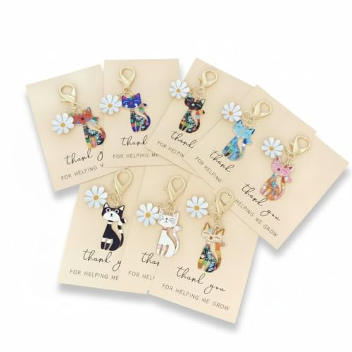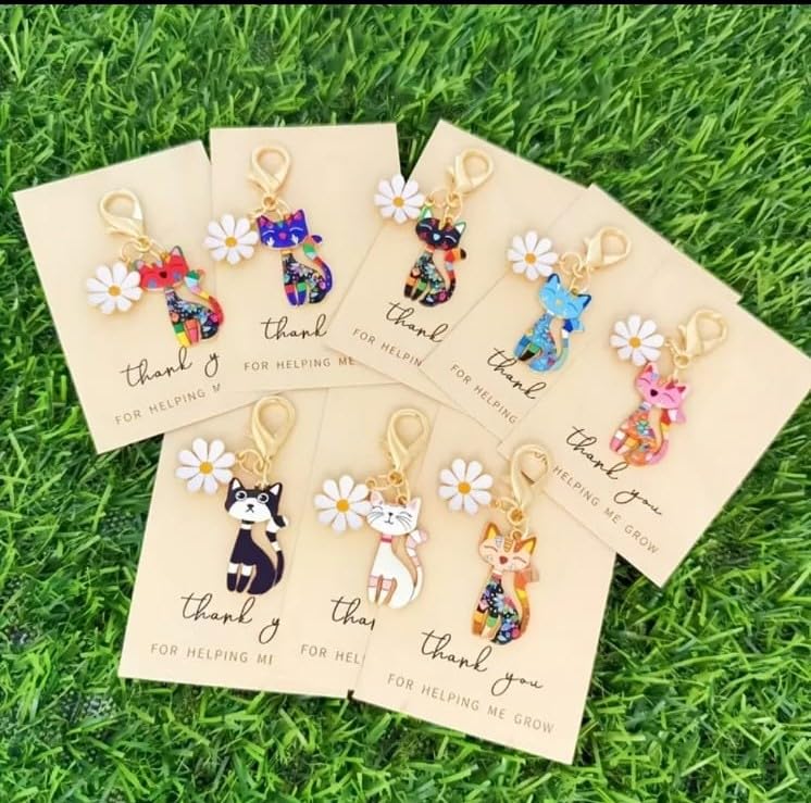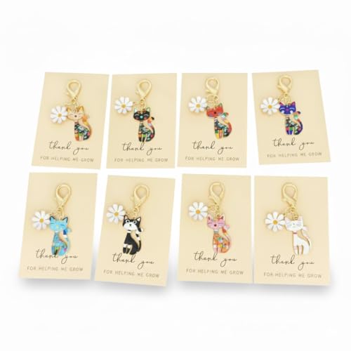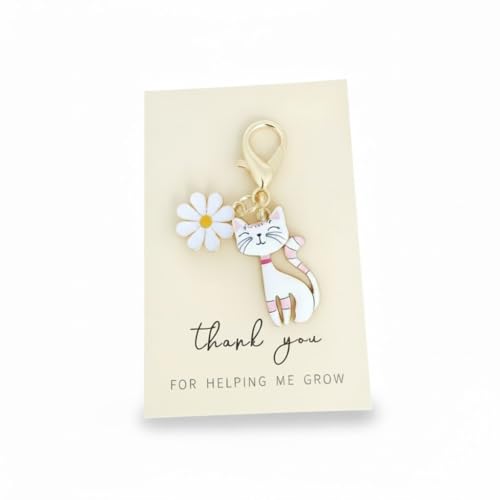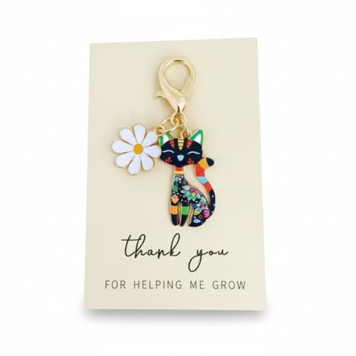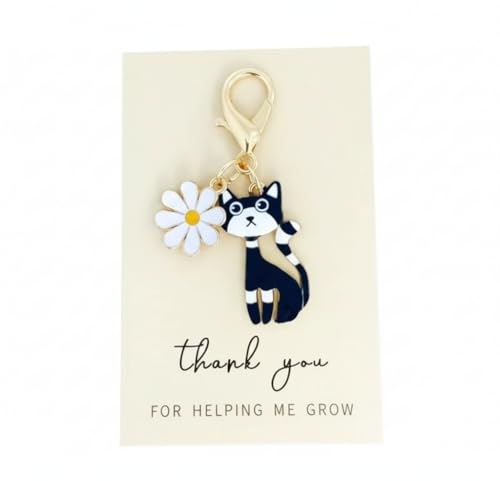 Generic - سلسلة مفاتيح بتصميم قطة مع دلاية زهرة الاقحوان، هدية شكر مع بطاقة تقدير بشكل عشوائي