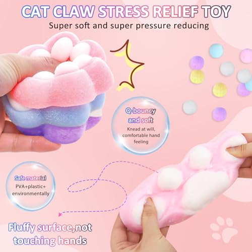 - 【ألعاب ضغط مخالب القطط】سوف تحصل على مجموعة من ألعاب الضغط على مخالب القطط مع 4 ألعاب مقذوفة بألوان جميلة. توفر ألعاب القطط الناعمة اللطيفة هذه تأثير ارتداد لطيف يعطي شعورًا مهدئًا عند الضغط عليها.