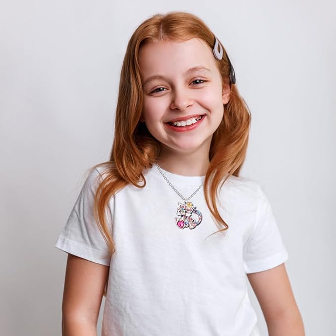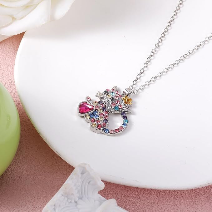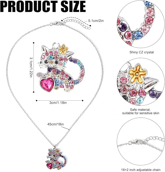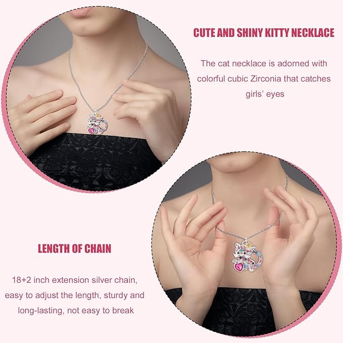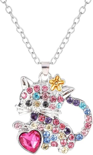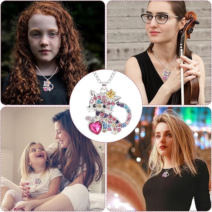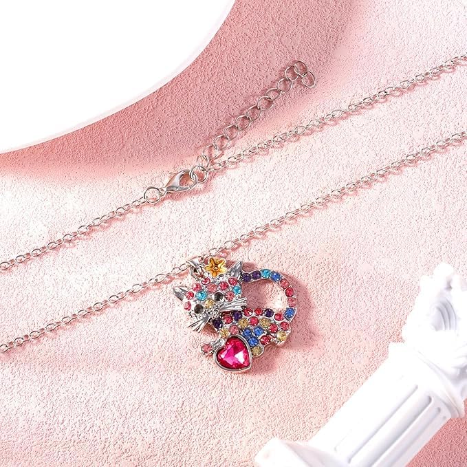 fashion mania - عقد بقلادة على شكل قطة للبنات، قلادة كيتي لطيفة، قلادة من حجر الراين على شكل قطة لامعة، قلادة بدلاية على شكل قطة