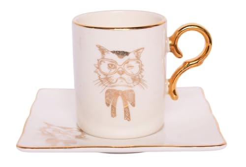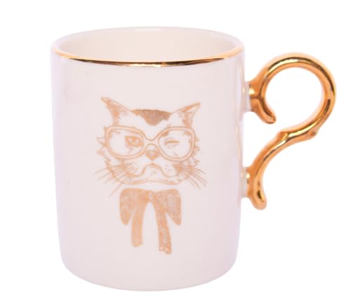 - بورسلين أبيض مع تصميمات قطة ذهبية للحصول على سحر غريب الأطوار.
