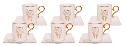 Generic - أكواب قهوة بورسلين برسمة قطة مع أطباق، أبيض وأسود، طقم مكون من 12 قطعة