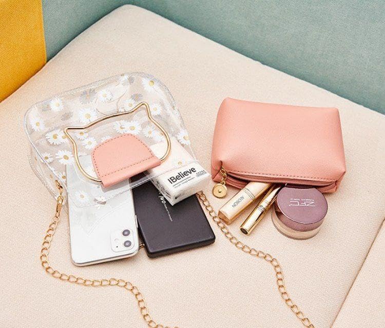 Generic - شنطة على شكل قطة - تفاصيل سلسلة شفافة عصرية، مثالية للحمل على الكتف، هدية مثالية للنساء والمراهقين، (اختيار اللون حسب الصورة)