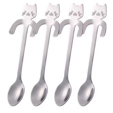 Generic - طقم ملاعق قهوة بتصميم قطة ساحر - لمسة مرحة وأنيقة لمشروباتك (4 قطع)
