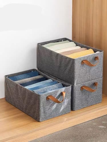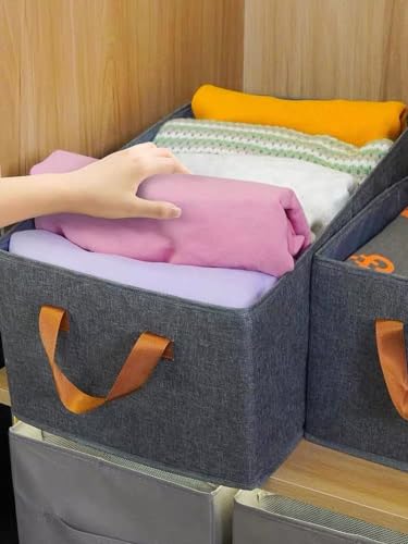 Al Arab for Import & Distribution - Ismail EL Fiky - صندوق تخزين الملابس كاتيونيك ملابس وبنطلونات قابل للطي بسعة كبيرة قماش سميك بلمسة نهائية منزلية - قطعة واحدة