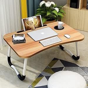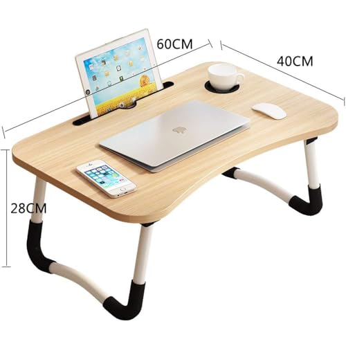 Spaceshoop - طاولة لاب توب متعددة الوظائف من كاتكيت ستور، مكان لكوب المشروبات والتابلت، طاولة متعددة الوظائف للسرير والأريكة والأرضية (مقاس 60 سم، خشب الجوز)