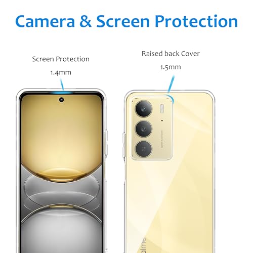 CAUHENYEE - جراب شفاف لموبايل ريلمي 14X 5G/ريلمي C75 4G، مع شاشة من الزجاج المقسى، غطاء شفاف رفيع وناعم من البولي يوريثين الحراري، مضاد للخدش والصدمات من كوهيني