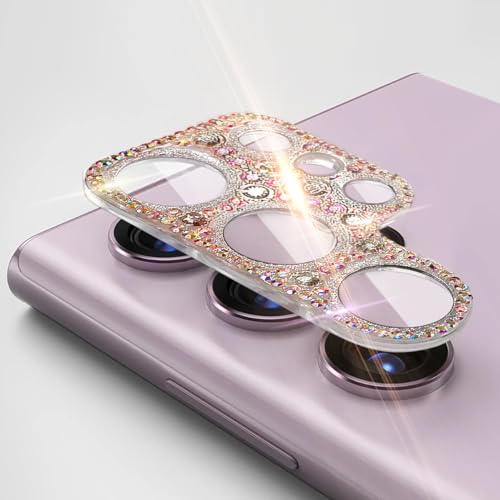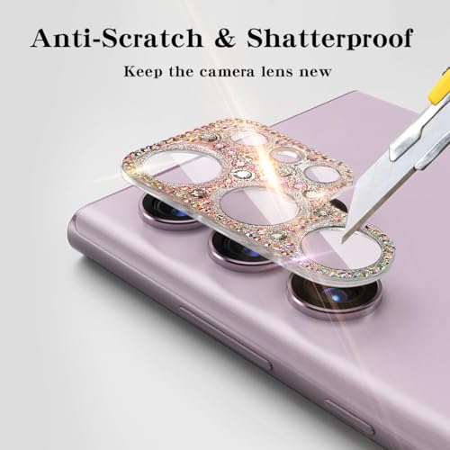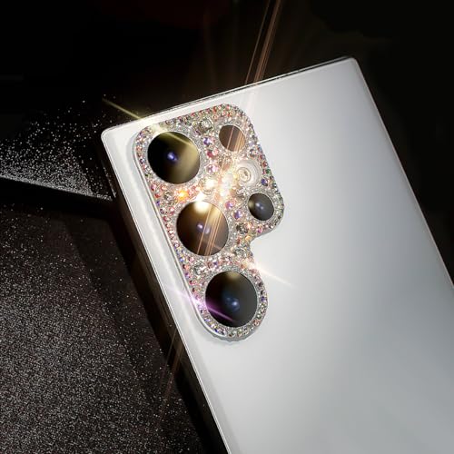 Cavdycidy - واقي عدسة الكاميرا المرصع بالألماس اللامع، غطاء معدني لامع مزين بالأحجار وزجاج مقوى بصلابة 9H يغطي العدسة بالكامل مع حماية براقة بأحجار الراين متوافق مع سامسونج جالاكسي S24 الترا من كافديسايدي