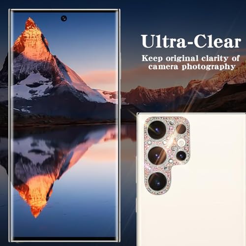 - واقي عدسة كاميرا محسن ومزخرف يدويًا بأحجار كريمة لامعة وألماس، متوافق مع سامسونج جالاكسي S24 الترا.