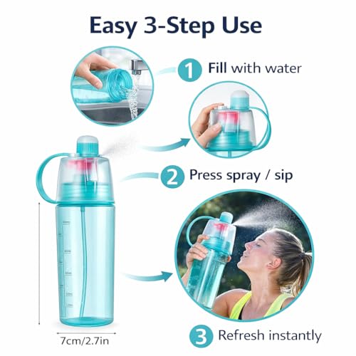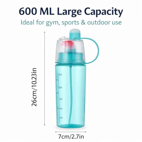 - زجاجة مياه بخاخ 2 في 1 للأطفال. بسعة 600 ملليلتر وميزة رذاذ منعش، فهي مثالية للبقاء رطبًا أثناء الأنشطة مثل ركوب الدراجات، والجري، وجلسات الجيم، والتنزه، وتسلق الجبال.