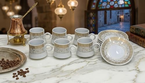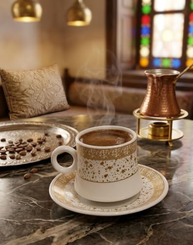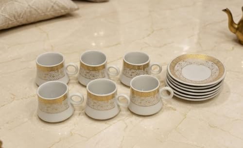 - محتويات الطقم: يتضمن 6 فناجين قهوة و6 صحون متطابقة، إجمالي 12 قطعة لتقديم القهوة بأناقة