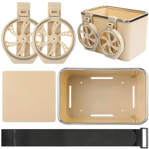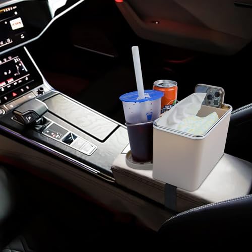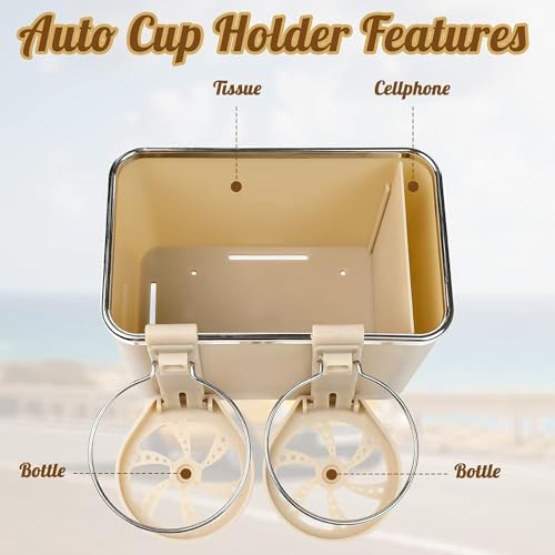Cazuela - صندوق تخزين مسند ذراع السيارة قابل للطي، متعدد الوظائف بحامل مزدوج لأكواب المياه والقهوة والمشروبات الباردة والمناديل الورقية والموبايلات من كازويلا (بيج)