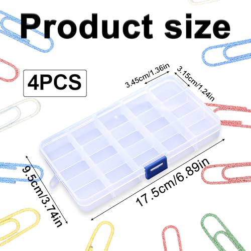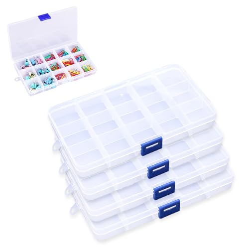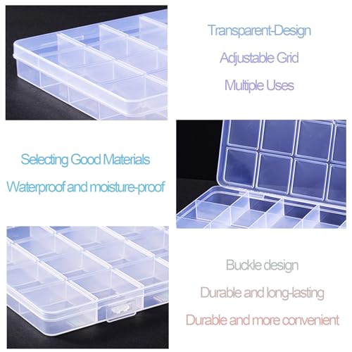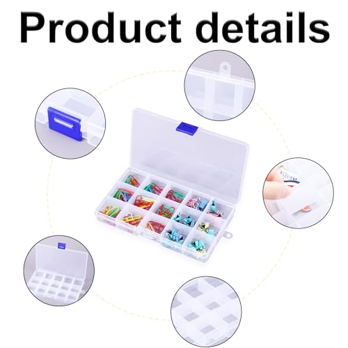- صندوق تخزين متين: صناديق تخزين الخرز مع غطاء مفصلي ومشبك تثبيت، تأتي مع فواصل قابلة للتعديل لتشكيل ما يصل إلى 15 مساحة تخزين (5 × 3)، 4 قطع