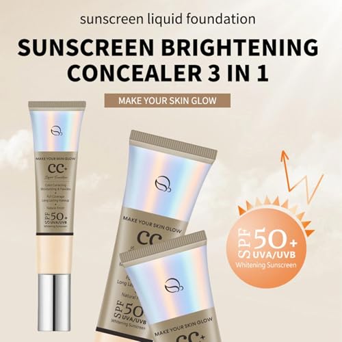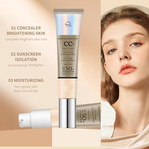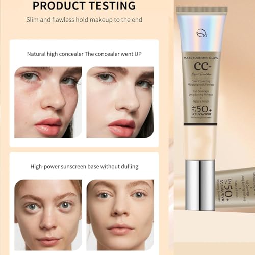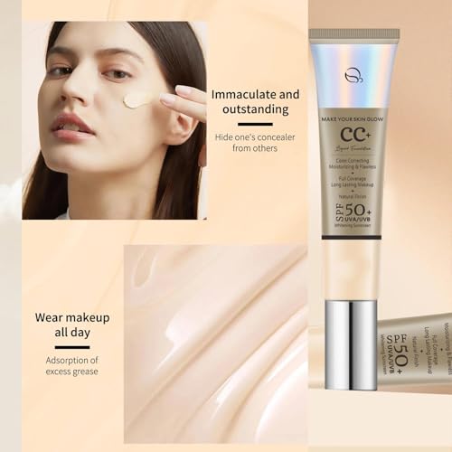 AurolaGlow - كريم سي سي مع عامل حماية من الشمس 50+، كريم أساس بتغطية كاملة، كريم وجه لتصحيح اللون وتفتيح، تعديل لون البشرة للحصول على توهج طبيعي