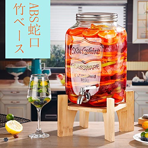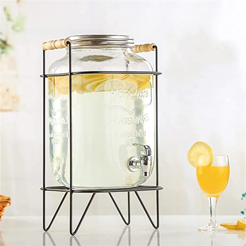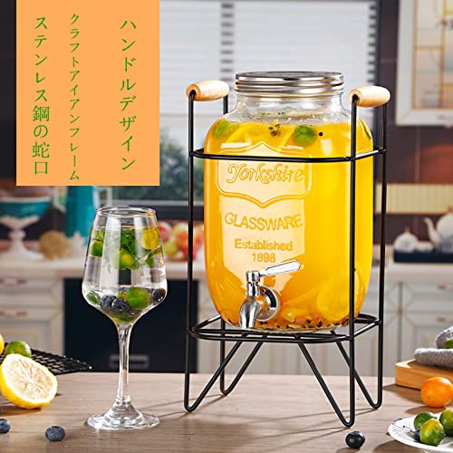- 【مواد عالية الجودة】موزع المشروبات مصنوع من زجاج سميك خالٍ من الرصاص، مادة آمنة غذائيًا. الغطاء مصنوع من مادة معدنية + حديد مطاوع ودعامة خشبية. مثالية للاستخدام المنزلي