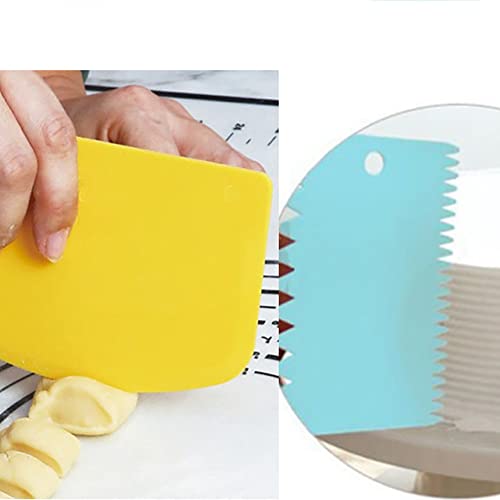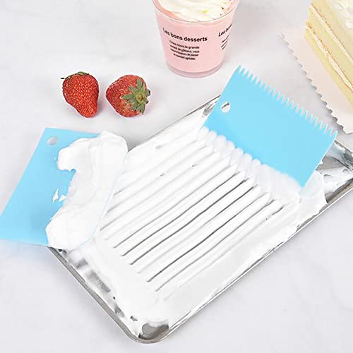 ccHuDE - أداة تقطيع العجين البلاستيكية ذات حواف منحنية مرنة للأوعية والكريمة، وملعقة سباتولا متعددة الأغراض لأطباق المطبخ والخبز من سي سي هود، 3 قطع، أزرق