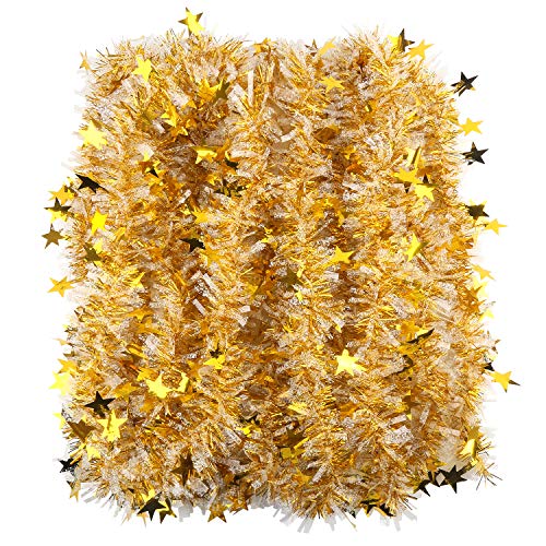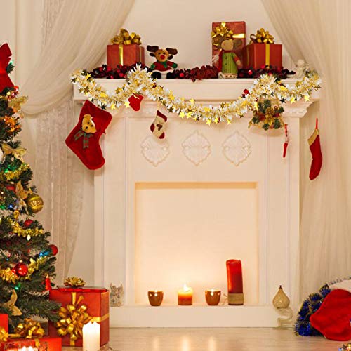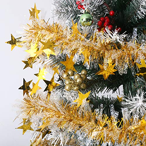 CCINEE - اكليل معدني ملفوف من سي سي اي ان اي اي لزينة الحفلات وشجرة الكريسماس بلون ذهبي وابيض - 33 قدم