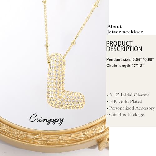 CCINPPY - سلسلة بتصميم حرف فقاعي، سلسلة أنيقة مطلية بالذهب عيار 14 قيراط للنساء بدلاية مكتنزة من A إلى Z، قلادة مخصصة للكريسماس وأعياد الميلاد من CCINPPY