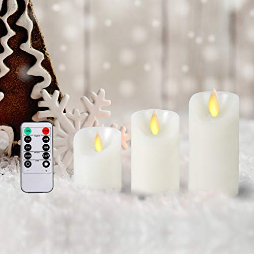 CCLIFE - مجموعة شموع ليد مصنوعة من شمع البارافين الحقيقي من البلاستيك بدون لهب، تعمل بالبطارية، مع جهاز تحكم عن بعد ومؤقت للتشغيل لمدة 300 ساعة، مكونة من 3-5 قطعة 3 شموع ليد مصنوعة من شمع حقيقي