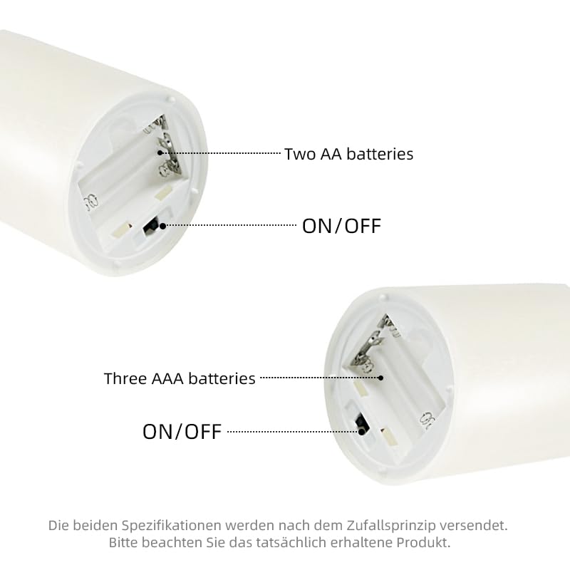 - مجموعة من 3 شموع LED: القطر 2.95 انش. يبلغ ارتفاع كل منها 10 سم / 12.5 سم / 15 سم + 1 جهاز تحكم عن بعد (بما في ذلك خلية زر واحدة) + 1 تعليمات تشغيل (اللغة الإنجليزية غير مضمونة). (تتطلب كل شمعة 3 بطاريات ايه ايه ايه، وهي غير متضمنة)