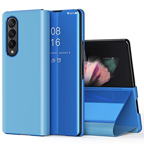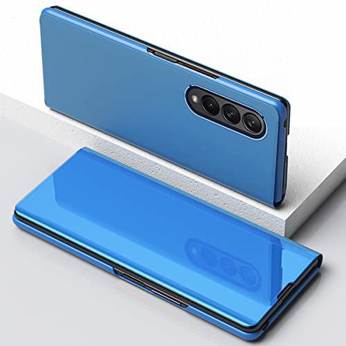 CCSmall - جراب حماية مراة لموبايل سامسونج جالاكسي Z فولد 4 شبكة الجيل الخامس5G من سي اس مول قلاب شفاف فاخر رفيع للغاية مع غطاء ومسند لاسلكي لسامسونج بجودة عالية لون ازرق البولي يوريثين الحراري