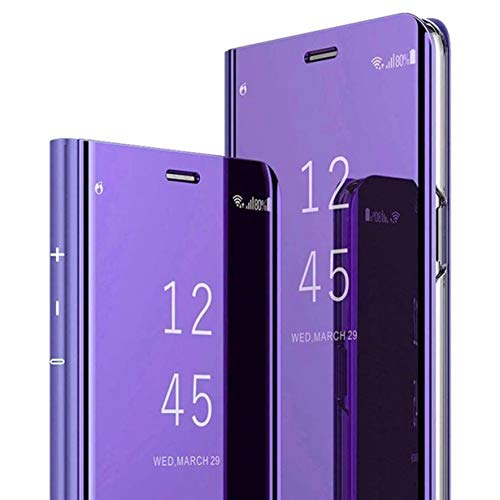 CCSmall - جراب حماية مراة لموبايل شاومي بوكو F4 شبكة الجيل الخامس 5G من سي سامل قلاب شفاف فاخر رفيع للغاية ذو جودة عالية امكانية شحن لاسلكي مع غطاء ومسند لون ارجواني البولي يوريثين الحراري