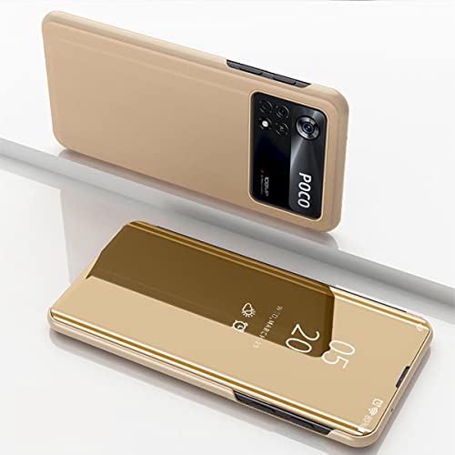 CCSmall - جراب من البولي كربونات مراية لموبايل شاومي بوكو X4 برو شبكة الجيل الخامس 5G يدعم الشحن اللاسلكي سمارت رفيع جدا بعرض فاخر سي سمول ذهبي كيو اتش لهاتف X4 5G