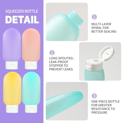 - تصميم مانع للتسرب من قطعة واحدة: قل وداعًا للانسكابات الفوضوية! زجاجات السفر الخاصة بنا مصنوعة من مواد صلبة أكثر مقاومة للضغط، تصميم إضافي من 3 طبقات مانع للتسرب يمنع تسرب السوائل أو الانسكاب. حافظي على مستحضرات التجميل الخاصة بك آمنة أثناء السفر