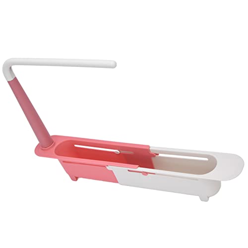 Ccylez - سي سي واي ال اي زد حامل اسفنجة حوض المطبخ، رف تخزين تلسكوبي للحوض للفرشاة مع قطعة قماش اسفنجية لغسل الاطباق، منظم حوض قابل للتوسيع من البولي بروبيلين، احمر