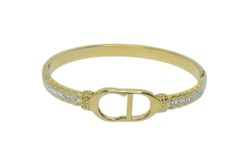 Generic - سوار ستانلس ستيل مزين بالكريستال بتصميم سي دي للنساء - ذهبي