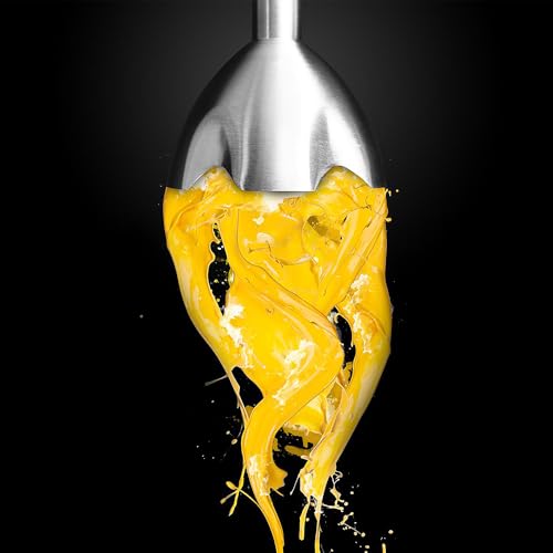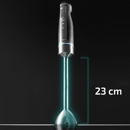 - خلاط يدوي بقوة قصوى تصل إلى 1500 وات، وهو الأقوى في السوق. طراز كبير جدًا مع ذراع إضافية طويلة للاستخدام الأكثر راحة دون تناثر الماء.