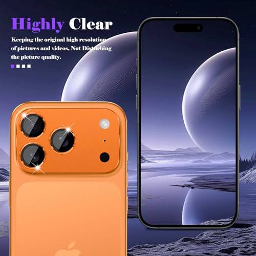 CeiLarv - واقي عدسة الكاميرا لموبايل آيفون 17 برو ماكس بامتصاص قوي مقاوم للكسر، غطاء شاشة كاميرا خلفية من الزجاج المقوى من سيلارف، لون برتقالي