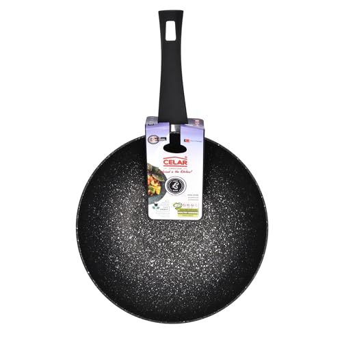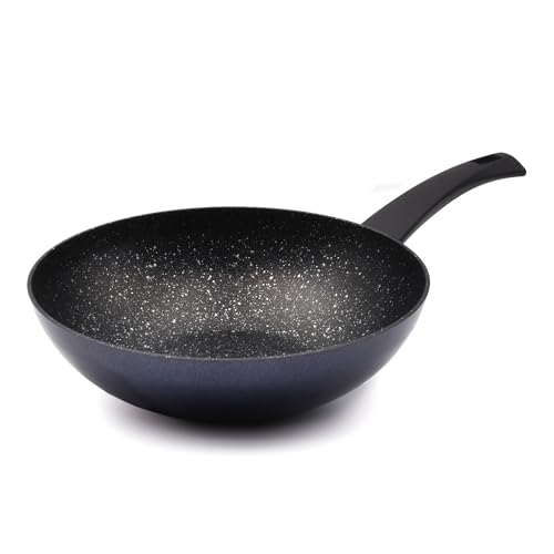 CELAR - طاسة ووك ألومنيوم ليدي بلو مقاومة للالتصاق من سيلار، متوافقة مع موقد الحث الكهربائي وموقد الغاز، قطر 28 سم، صُنعت في البرتغال، أزرق